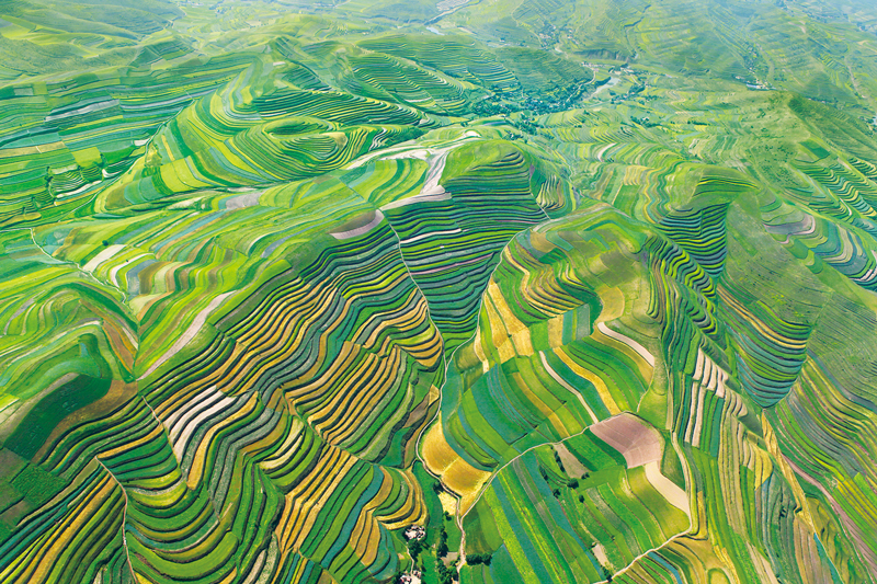 闽宁对口扶贫协作给“穷沟沟”带来山乡巨变,实现“苦瘠甲天下”到“绿水青山”的蝶变。当年十年九旱的西海固地区通过移民搬迁、退耕还林、平整土地、保墒增收,如今生态得到了极大修复,生产生活条件得到了极大改善。图为宁夏西海固地区西吉县震湖乡小流域治理生态修复区。强继周/摄