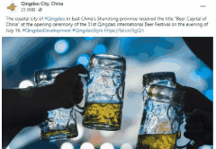 ■《中国日报》英文网站及其推特、脸书等社交平台,在持续报道啤酒节内容的同时,还对青岛西海岸新区“啤酒之城”国际名片进行了解读,称啤酒节不断将青岛西海岸新区城市综合发展推向新的高度,对后疫情时代提振消费、促进文旅市场复苏、扩大海外知名度,加快建设开放、现代、活力、时尚的国际化大都市,起到了积极作用;中国日报抖音、快手新媒体平台发布啤酒节消息,1小时获赞4000。