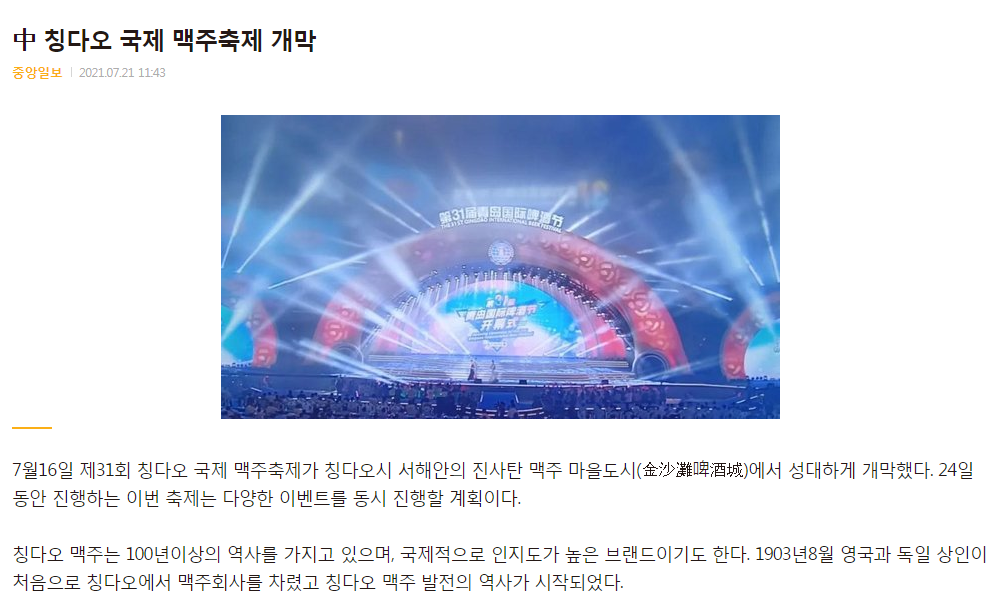 外媒报道称,第31届青岛国际啤酒节以庆祝中国共产党成立100周年为主线,以“华彩啤酒节”为主题,为期24天,在主题彰显、啤酒荟萃、大篷氛围、美食特色、文化演艺、时尚活动、休闲体验上呈现“七大精彩”,金沙滩啤酒城还精心组织了时尚与演艺活动400余场,吸引了市民游客广泛参与。