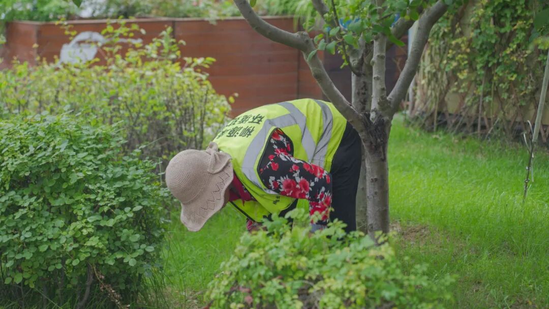 环卫保洁员们用无数次弯腰、蹲起,