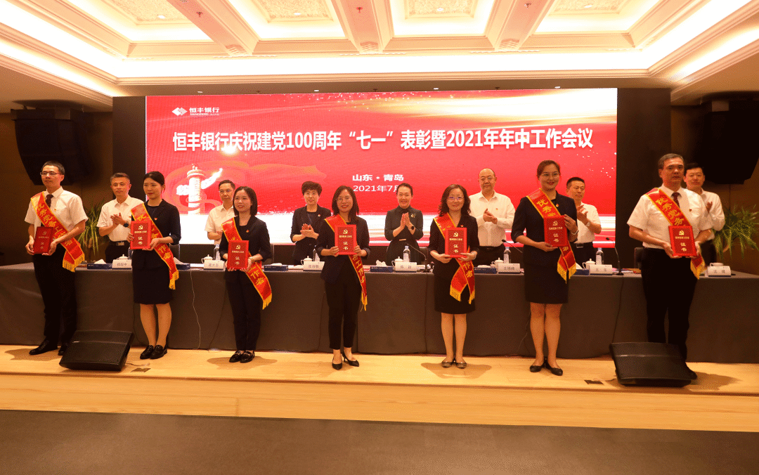 7月24日至25日,恒丰银行在青岛召开庆祝建党100周年“七一”表彰暨2021年年中工作会议,深入学习贯彻习近平总书记“七一”重要讲话精神,总结回顾上半年工作,全面分析问题,聚焦战略执行,对下步工作作出安排部署。党委书记、董事长陈颖,党委副书记、行长王锡峰出席会议并讲话,党委副书记、监事长张淑敏主持会议,副董事长叶东海出席会议。
