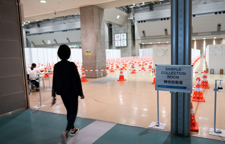 这是7月4日拍摄的东京奥运会主新闻中心内核酸检测区。新华社记者 曹灿 摄