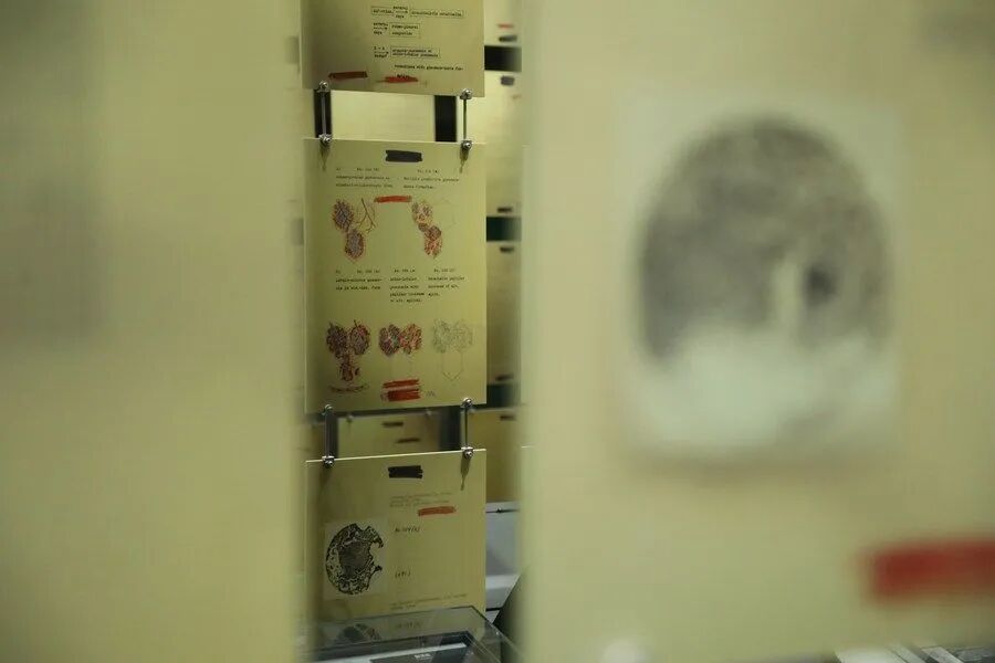 据专家介绍,《炭疽菌实验报告》从292页到311页,是腺素腺体的病理变化情况,在这部分引用的显微镜观察照片第“M325号”和“M54号”的说明中标识“德特里克”字样。专家表示,“德特里克”即现在美军德特里克堡基地,可以断定《炭疽菌实验报告》也曾保存在德特里克堡基地。