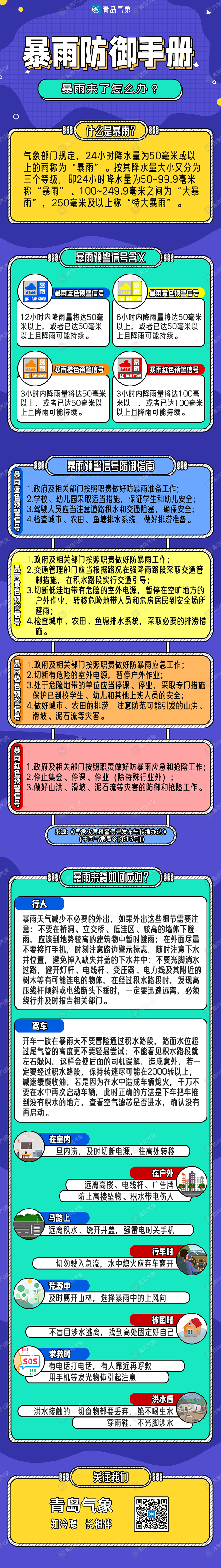 近期,暴雨在岛城频频出现,关于“暴雨”的知识点你都知道吗?一张图让你明明白白↓