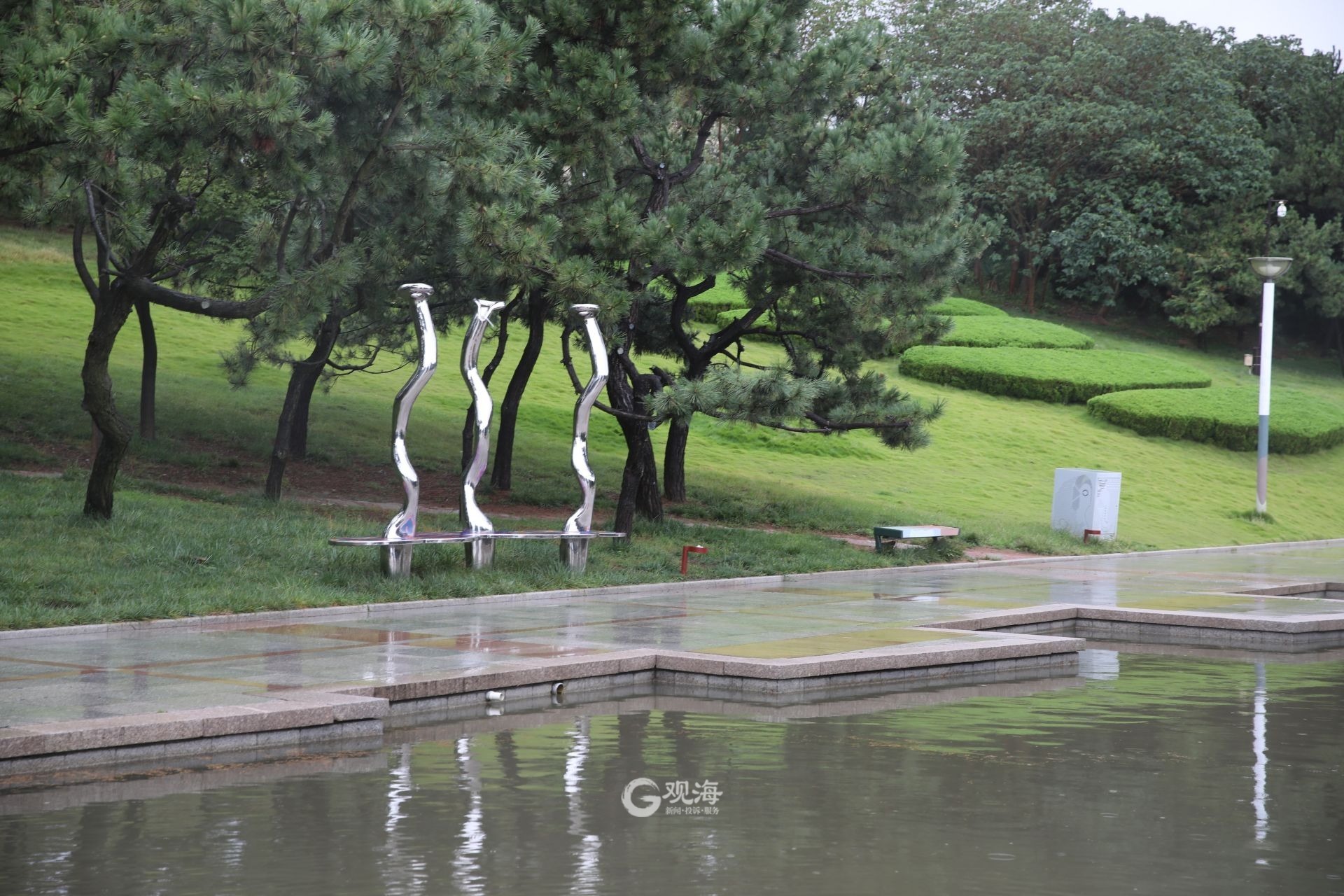 - 青岛雕塑园坐落于黄海滨畔,在园区内遥望雨中的山海,分外美丽。