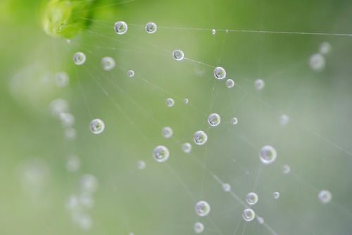 蜘蛛网上的露珠晶莹剔透。 新华社发 周海军 摄