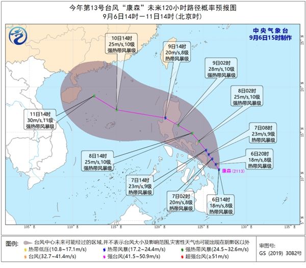 据中央气象台消息,9月6日14时,今年第13号台风“康森”(CONSON)生成,其中心位于北纬10.8度、东经126.8度,距离菲律宾马尼拉东偏南方向约760公里;中心附近最大风力8级(18米/秒),中心气压1000百帕。预计,“康森”将以每小时15公里左右的速度向北偏西方向移动,强度逐渐增强。 责任编辑:程雪涵 0