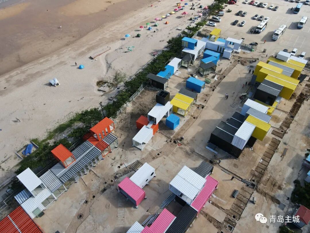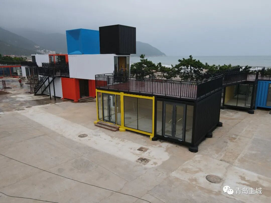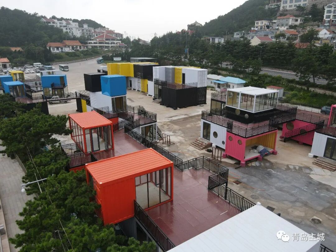 今天,在崂山区沙子口街道的流清湾,观海新闻记者看到一个被称为“魔方公园”的在建项目,在5000多平方米的地面上,70多个集装箱被涂成蓝、黄、灰、白、粉等缤纷的色彩,以时尚模块的方式组合在一起。
