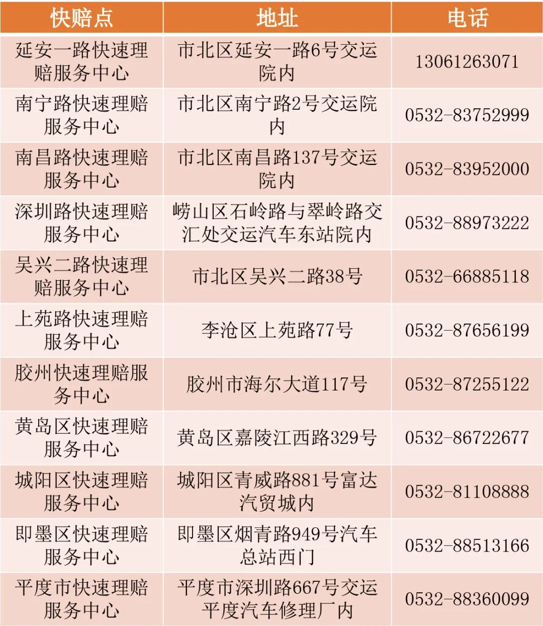 7.发生事故快处快赔。当两车发生轻微交通事故,无人员伤亡,单车损失在5000元(含)以内可继续行驶,且双方保险齐全时,请选择快速理赔处置。本办法适用于青岛市市南区、市北区、李沧区、高新区辖区及崂山区、城阳区、黄岛区、即墨区、胶州市、平度市、莱西市限定区域内每日6时至20时发生的轻微道路交通事故。同时使用“交管12123”手机APP“事故快处”功能,按要求上传车损照片,也可快速处理轻微交通事故。