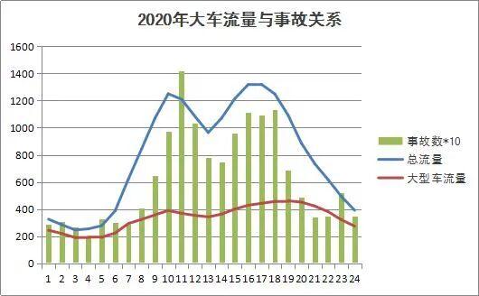 据往年高速公路交通事故数据显示,事故高发时段一般在11时左右和16时-18时,事故总量变化与整体流量趋势相吻合,饱和度越高,事故越多,其中伤亡事故高发主要集中在凌晨前后。