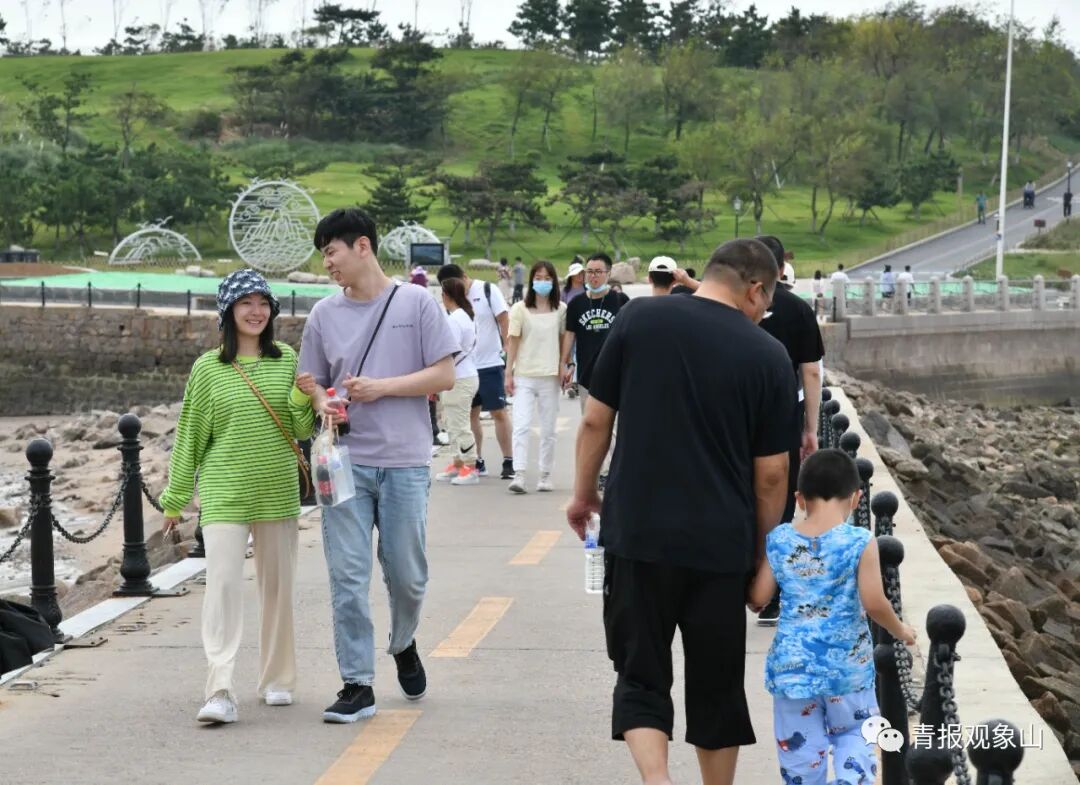 无独有偶,信号山、小鱼山等的人潮也不含糊,这两处山头公园坐落于青岛“红瓦绿树,碧海蓝天”景观核心区域,是观景赏绿的好去处,更是登高遥望青岛风景的绝佳地点。尤其是9月1日免门票开放以来,小鱼山门口经常会排起长队。