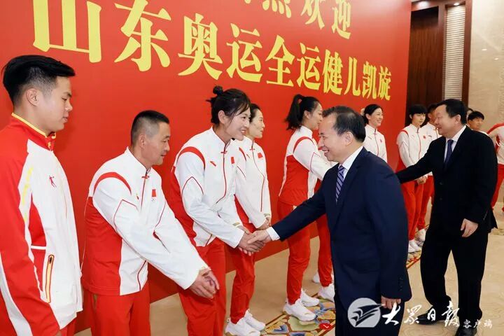 李干杰说,习近平总书记高度重视体育工作,多次作出重要指示批示,要求“加快建设体育强国”。我们要深入学习贯彻习近平总书记关于体育工作的重要指示要求,把体育事业放在新时代现代化强省建设全局中谋划推进,大力发展群众体育事业和体育产业,大力提升竞技体育综合实力,大力推进体育工作改革创新,大力加强体育文化建设,加快建设健康强省,不断开创我省体育事业发展新局面。希望大家持续保持拼搏奋进的姿态,戒骄戒躁,再接再厉,为祖国、为家乡赢得更多荣誉。全省各级各部门、广大干部群众要向奥运健儿、全运健儿学习,以更加饱满的热情、更加昂扬的斗志投入到工作中,为新时代现代化强省建设作出新的更大贡献。