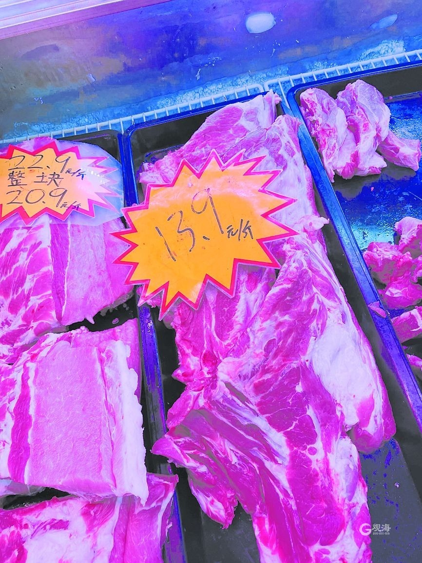 相比之下,猪肉的价格一直保持稳定。五花肉一斤13—15元,排骨一斤18元,有的超市做活动,整块购买排骨,价格低至13.9元一斤。不少市民开玩笑“吃不起青菜,只能吃肉”。