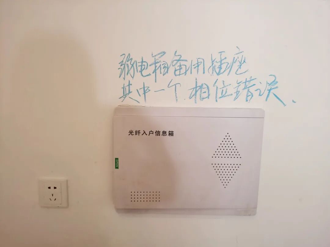 相零反这个问题,在海泊雅苑小区已经是一个通病,验房团每次验房都会发现这个问题。“这个插排上的两个插座朝向相反,但是内部线路是沿着同一方向走,这样就会导致其中一个插座的相位是反的。”于工介绍,小区的插座一般统一采购,很多业主家可能都装的是这种插座,所以验房团每次到该小区都会发现这个“老毛病”。