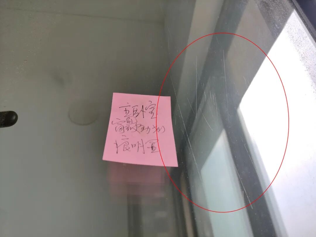 随后,岳工在窗户玻璃上还发现了划痕,另外,客厅、主卧、次卧的窗户玻璃都有明显划痕。“玻璃的问题怎么解决?”“玻璃出现问题直接找开发商解决,会给换新。”介绍完门窗问题后,岳工向池女士讲解了解决方法。“真是太感谢验房师了,我对装修真是一点都不懂,你们不光给我们业主验房,还顺便科普。”池女士认真将这些干货记了下来。