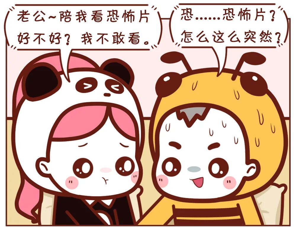 于是我嘟着嘴向蜂哥撒娇:“老公~陪我看恐怖片好不好?我不敢看。”