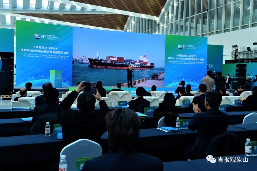 1月1日上午,中国青岛至日本关东搭载RCEP优惠关税货物首艘班轮启航。活动现场,RCEP青岛企业服务中心挂牌升级为RCEP山东企业服务中心,而该中心正位于RCEP青岛经贸合作先行创新试验基地内。