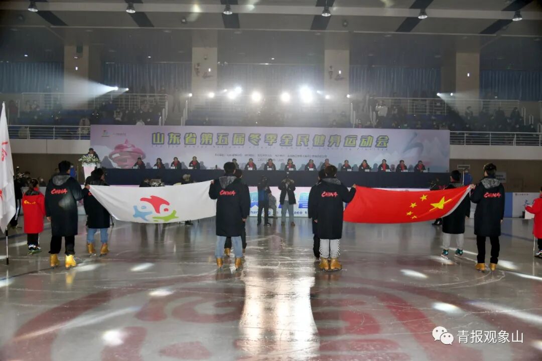 1月7日晚的国信体育场滑冰场内灯光璀璨、活力满满,一场华丽的冰上表演拉开了山东省第五届冬季全民健身运动会的序幕。这个时间上覆盖整个冬奥会赛期的全省冬季项目运动盛会,也有运动员称之为“冰雪节”——来自全省的冰雪运动爱好者齐聚一堂,共赴冰雪之约,传递冬奥梦想。