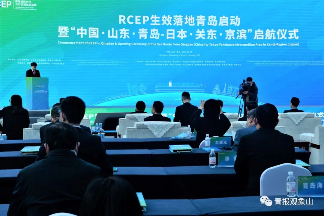在2022年1月1日零时RCEP正式生效的这一历史性时刻,青岛海关为青岛海湾集团有限公司签发的全国首份RCEP 原产地证书,就是出口到日本的一批2800余吨氯化钙;同样是在这一天,中国青岛至日本关东搭载RCEP优惠关税货物首艘班轮启航,中国北方地区与日本首条快捷物流通道——RCEP中日高端物流暨中日海上邮路合作项目签约落地,畅通中国对日本货物贸易运输的快速通道。