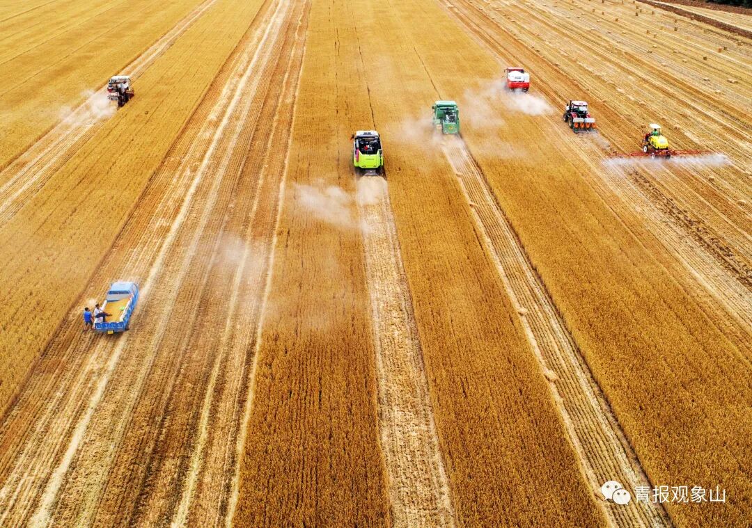 胶州市铺集镇进行机械化麦收 摄影/王宇翔