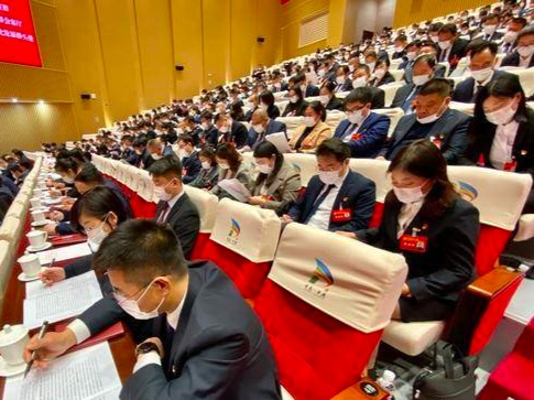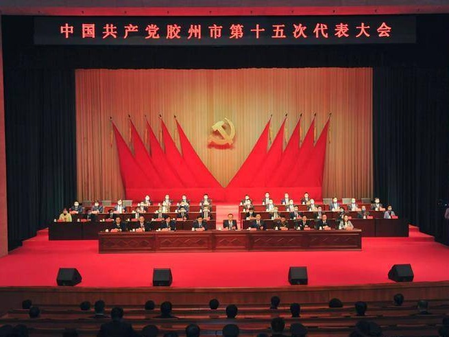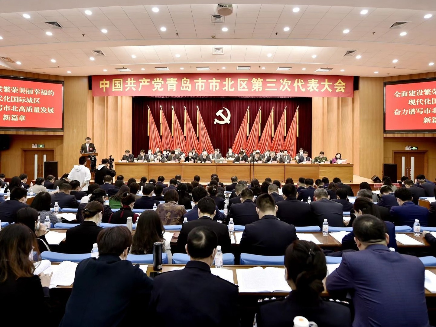 在雄壮的《国际歌》声中,中国共产党青岛市城阳区第七次代表大会胜利闭幕。(青岛日报/观海新闻记者 周伟)