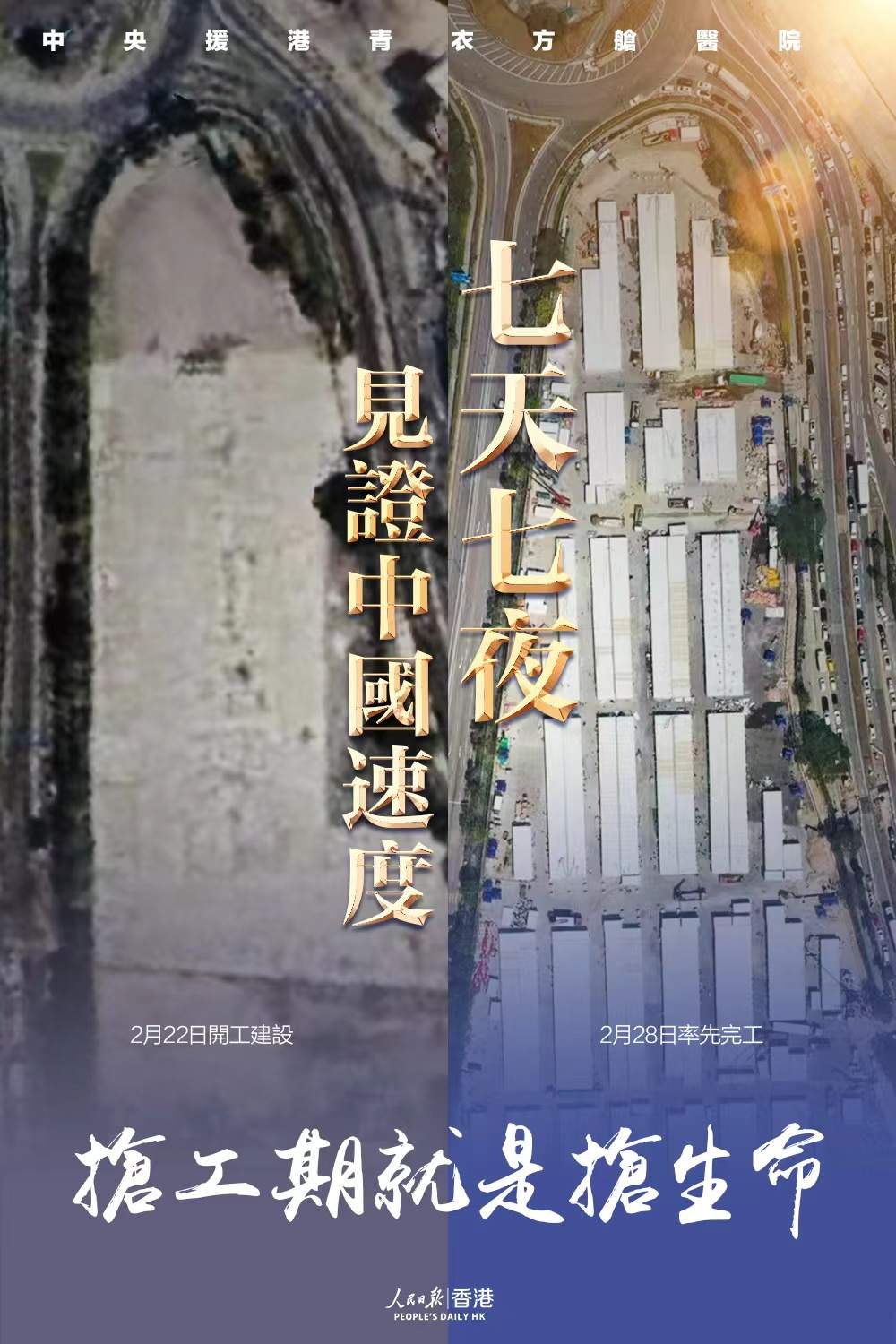 香港特区行政长官林郑月娥28日表示视频讲话时表示,位于香港青衣的社区隔离及治疗设施(即方舱医院)已于当日完工交付。