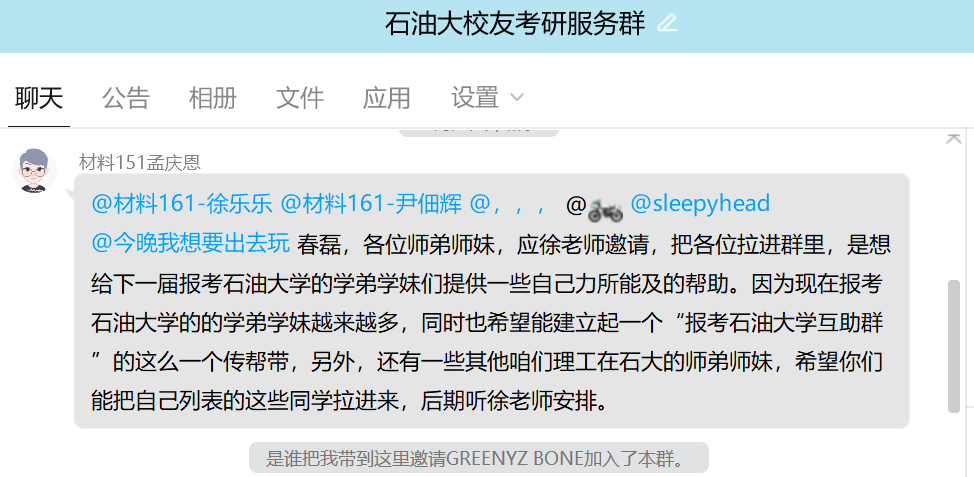 考研初试成绩公布后,青岛理工大学机械与汽车工程学院的辅导员徐卫晓第一时间摸排了同学们的成绩,发现学院过线考生中有21人报考了大连理工大学,26人报考了中国石油大学(华东),对于报考人数较为集中的学校,辅导员逐一联系往届校友,建立了线上咨询群。校友们通过传帮带,结合自身复试备考经验,在群内提供备考建议、分享复试方法,助力学弟学妹们在考研复试中成功上岸。