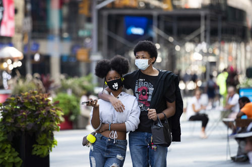 9月28日,行人走在美国纽约时报广场。新华社记者王迎摄