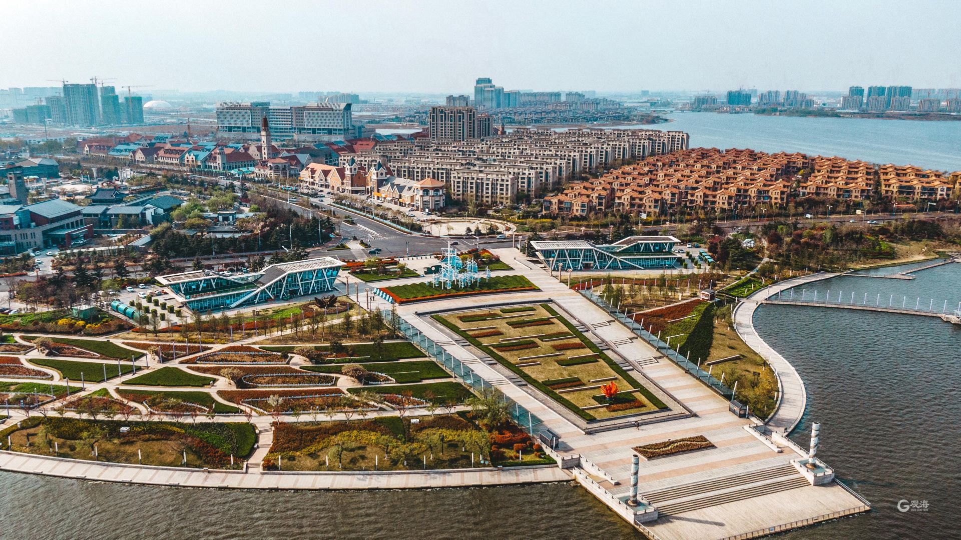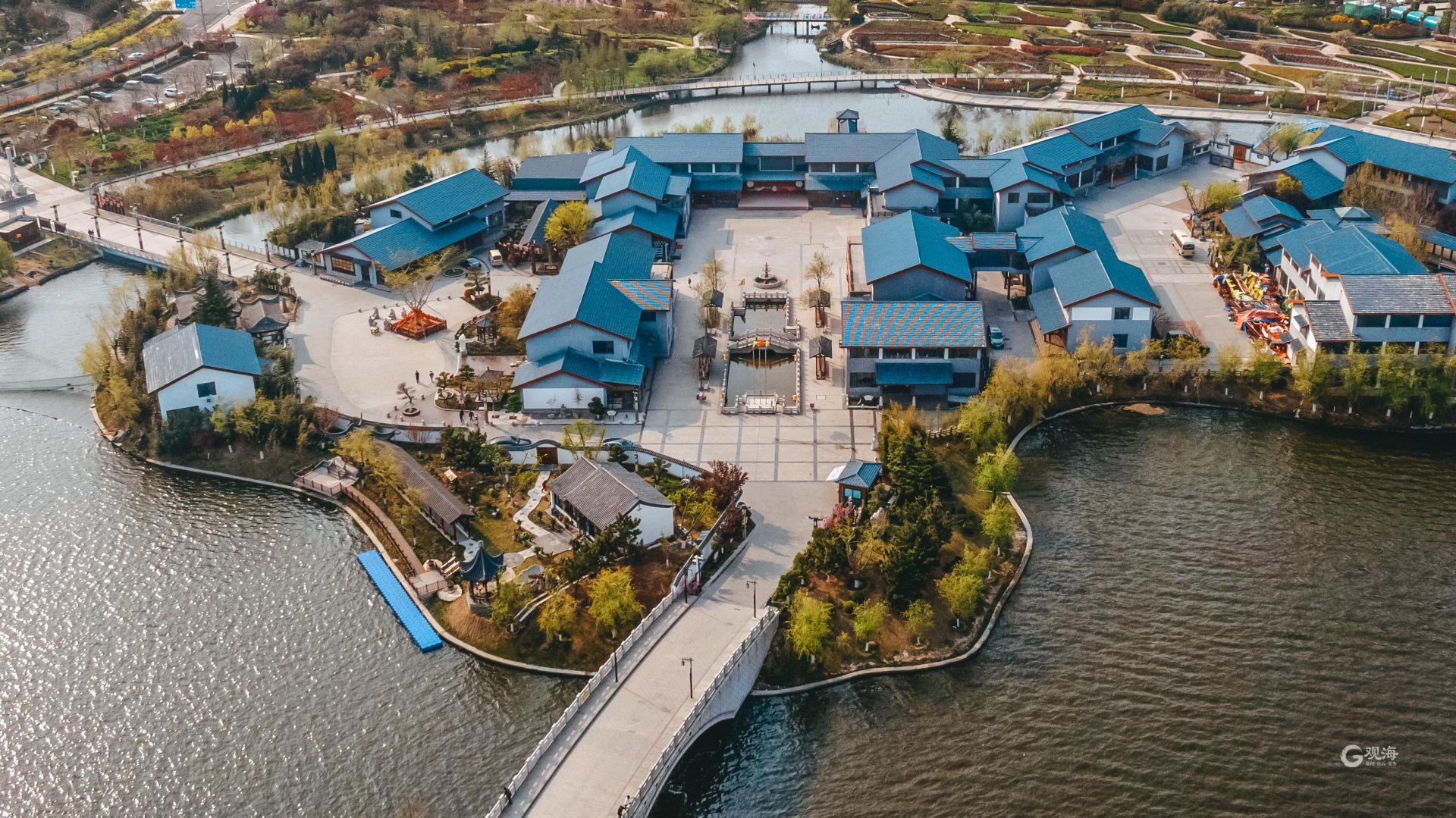 - 航拍视角下的建筑充满异域风情。