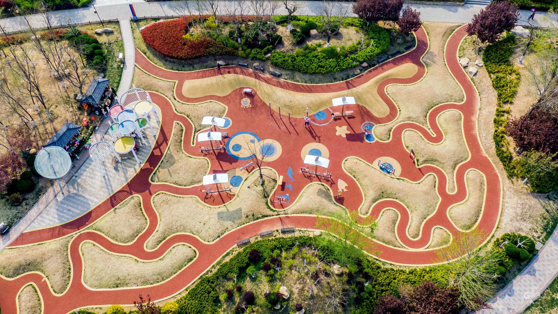 - 航拍公园内休闲区域。