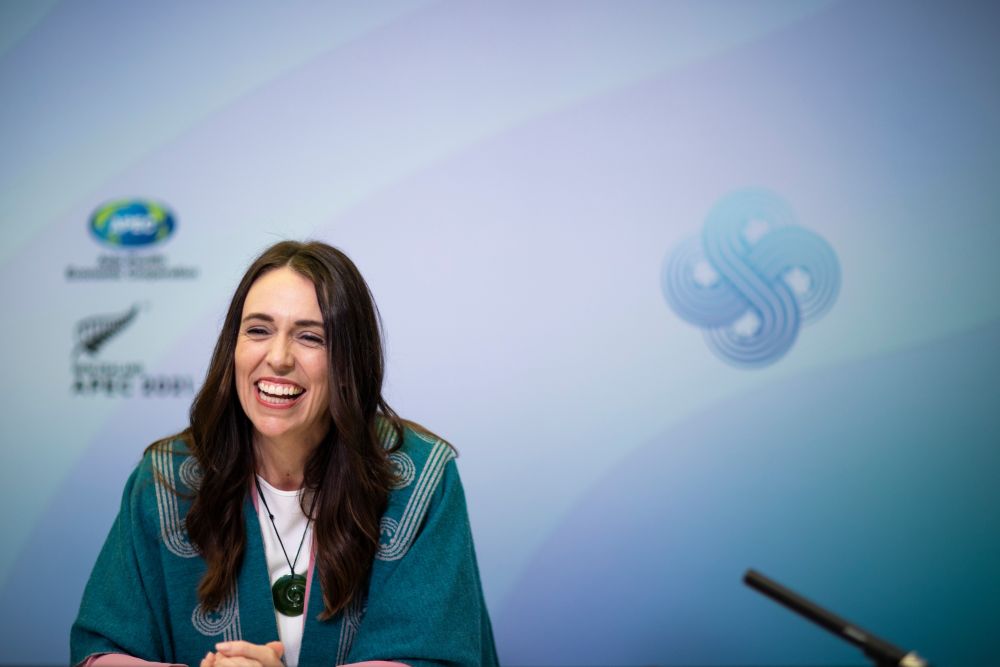 2021年11月13日,新西兰总理阿德恩在惠灵顿主持亚太经济合作组织第二十八次领导人非正式会议。(新华社发,组委会供图)