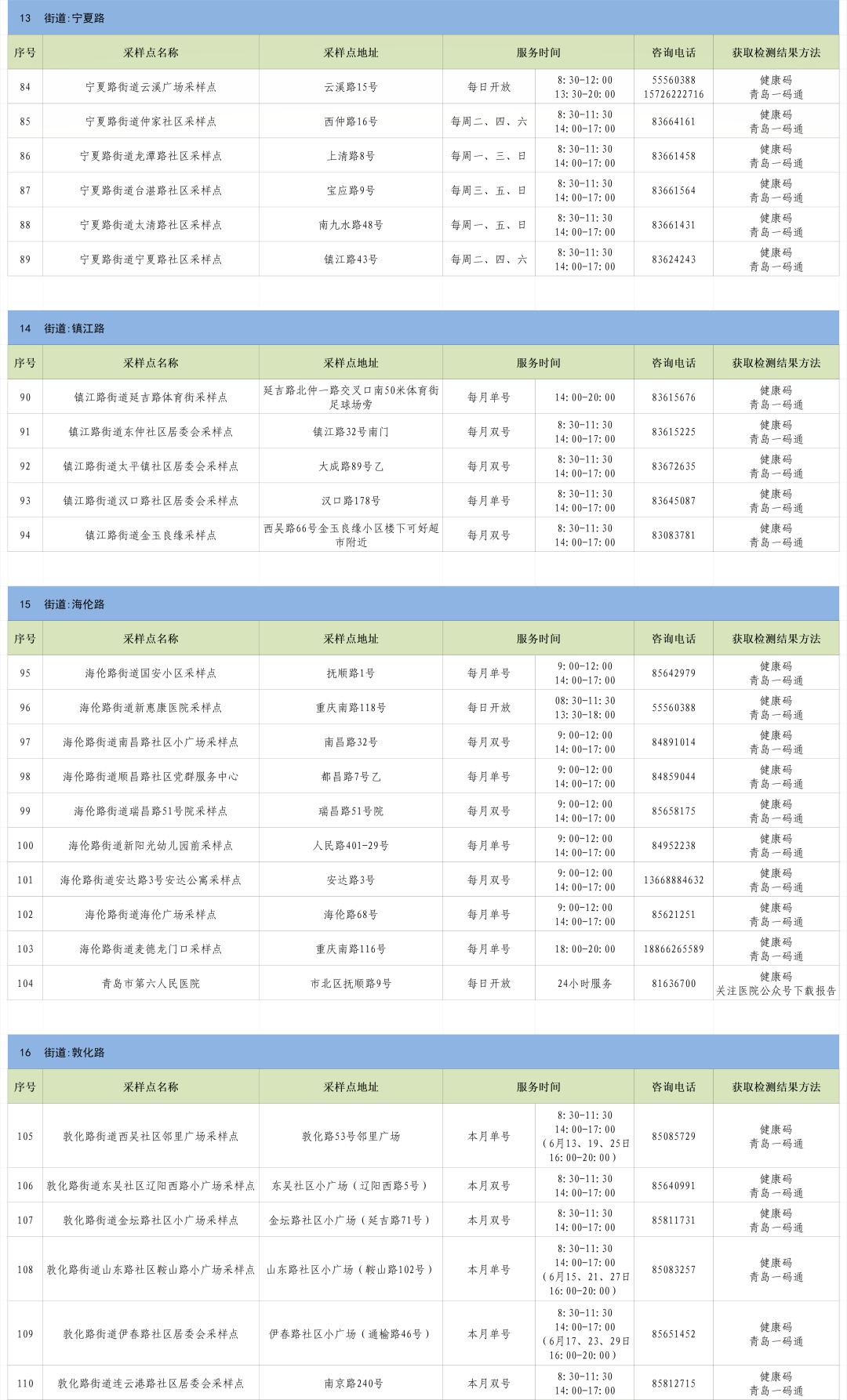 为满足广大市民朋友核酸检测“愿检尽检”需求,市北区卫生健康局对前期发布的“1520核酸检测服务圈”各采样点进行优化调整,现予以公布,以供大家查阅和选择,并将根据实际进行动态更新,所有采样点均免费提供服务,请您仔细阅知各采样点的地址、工作时间和相关提示,若有疑问请提前咨询。