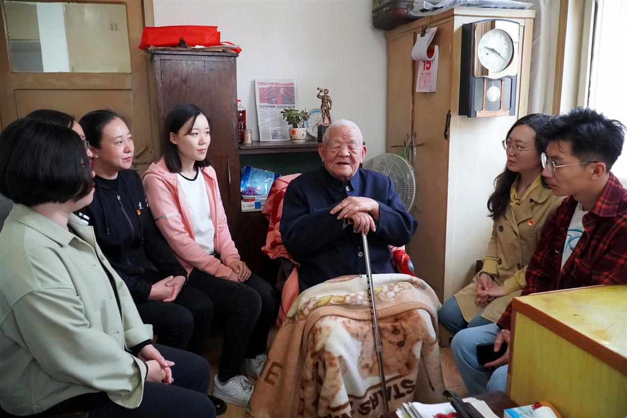 青岛市李沧区兴城路街道青年党员自发组织到武传本老人家中听老人讲党课