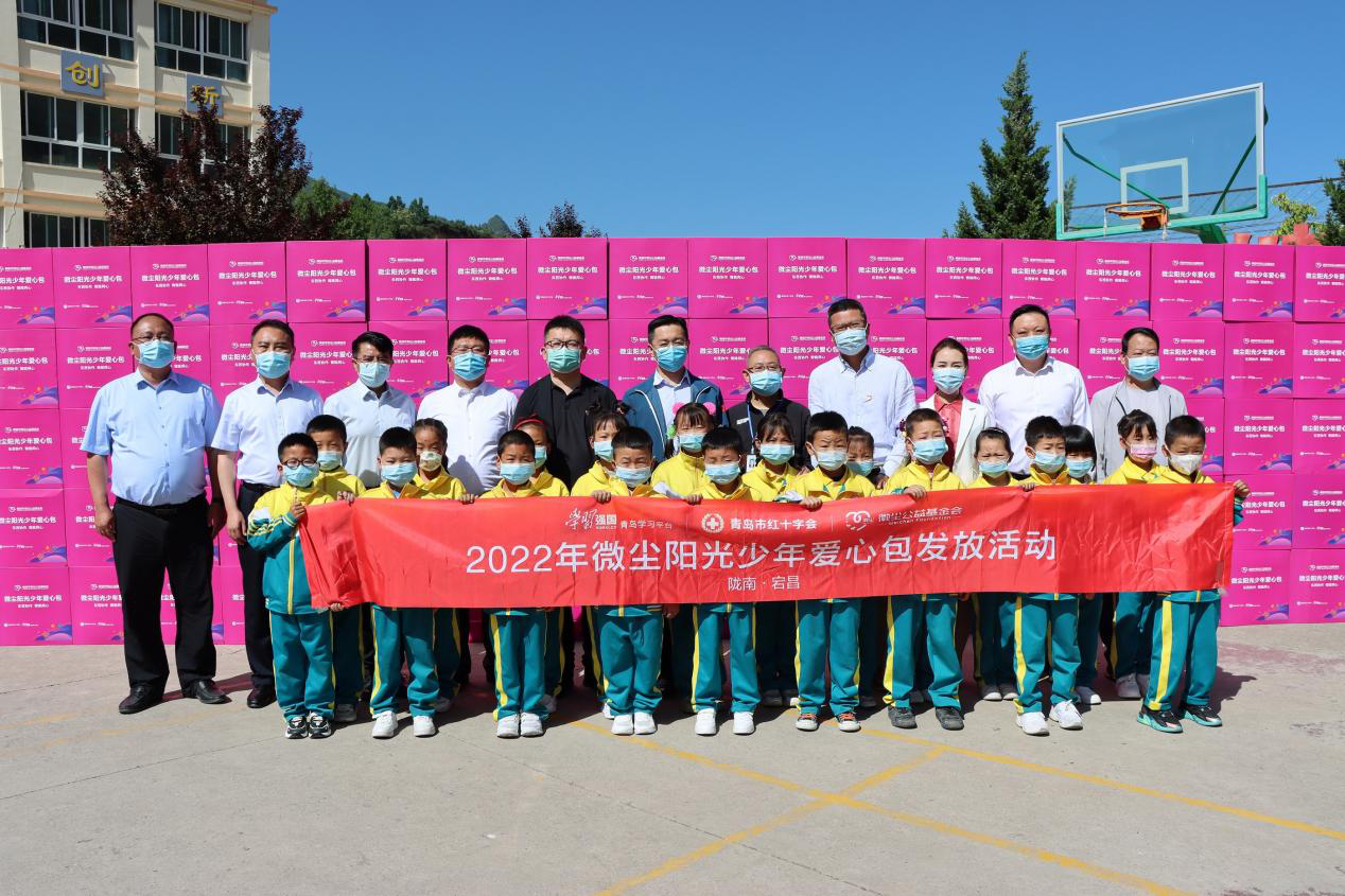 在中共青岛市委宣传部的指导下,青岛学习平台联合青岛市红十字会、青岛市微尘公益基金会,为陇南地区学校捐赠包括书包、运动服、护眼灯、文件套盒等学生必备物品的爱心包600余套,价值30余万元。同时在青岛市红十字会“博爱青岛”微信小程序上线“微尘阳光少年爱心包”公益项目,助力陇南、定西困境儿童的求学之路,书写学习之路上的“东西一家、山海情深”。