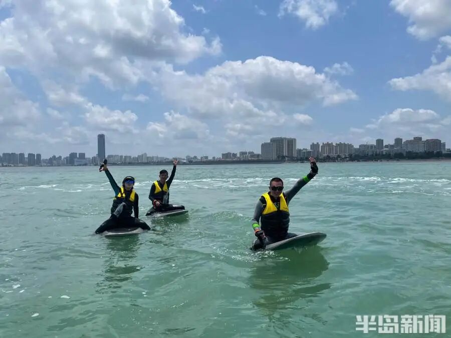 作为一名资深水上运动达人,刘继亮说这次横渡已经酝酿了两年的时间。刘继亮平时就喜欢挑战一些难度较大的运动,但是一直没有专业教练指导。国家摩托艇队主教练来青做项目推广活动时,刘继亮结识了多位专业教练,技术开始突飞猛进。2020年,刘继亮带领团队在三亚发现了一项网红水上运动——“尾波冲浪”,后来成功引进了青岛第一块电动水翼板,它的内部由电池驱动,整体像冲浪板一样,可以在水面上“飞行”,刘继亮想穿越琼州海峡的想法油然而生。刘继亮说:“作为一名中国人,我想驾驶着国产的电动水翼板从海面上‘飞’过中国自己的海峡。”