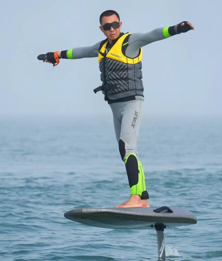 这是首次有人驾驶电动水翼板,成功横渡琼州海峡。