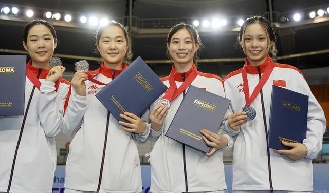 中国队在团体赛阶段的银牌来自女子花剑。14日的比赛中,陈情缘、石玥、蔡苑廷和吴培林组成的中国队首轮轮空,在四分之一决赛和半决赛相继击败中国台北队和韩国队。