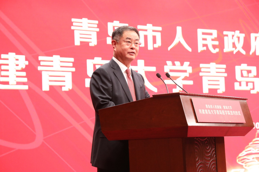 夏东伟在致辞时说,作为以青岛城市名字命名的综合大学,青岛大学始终坚持立足青岛、融入青岛、服务青岛,把服务青岛作为学校的重要使命担当。“十二五”“十三五”省市共建青岛大学以来,在青岛市委、市政府的支持下,青岛大学各项事业呈现加速度发展的良好态势。青岛市人民政府与青岛大学签署“共建青岛大学青岛医学院”战略合作协议,并将青岛7所医院作为市校共建附属医院,这是贯彻落实习近平总书记的要求,增进人民健康福祉的重要举措,是落实市委市政府“创建国家区域医疗中心,建设长江以北地区一流医疗中心城市”的具体行动,在青岛医学教育和医疗发展史上具有里程碑意义。