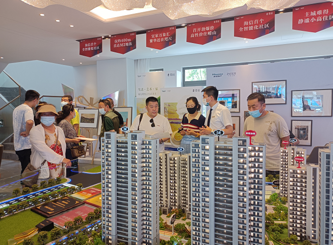 6月25日,青岛崂山区海信璞悦项目营销中心,市民在了解楼盘信息。青岛日报记者李鹏飞 摄影