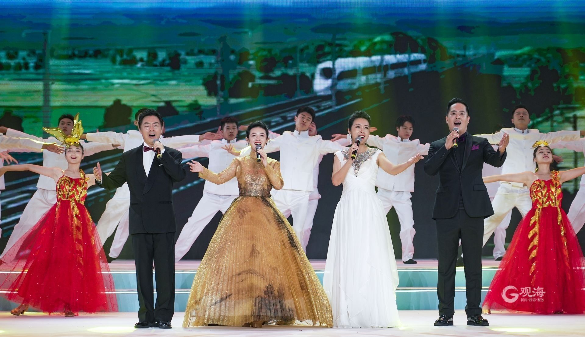 在位于青岛西海岸金沙滩啤酒城的“云上啤酒节”演播大厅,大型歌舞《领航》拉开了开幕式的序幕;音舞画《琴屿音画》用音乐和芭蕾相融合的艺术形式,书写了一首关于青岛和西海岸新区的美丽海滨抒情诗;恢宏大气的原创歌舞节目《山海之间》,展示了青岛西海岸新区蓬勃向上的发展面貌和奋斗姿态;本届啤酒节原创主题歌曲《醉美的日子》一登场便引爆全场,展现了青岛国际啤酒节的精彩、多元与包容;《幸福中国一起走》《灯火里的中国》两首歌曲真切表达了“清澈的爱,只为中国”,祝愿伟大的祖国繁荣昌盛。