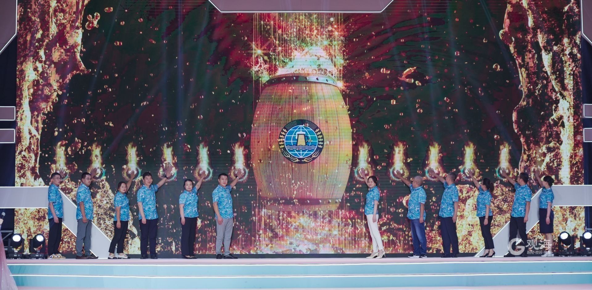 在第一桶啤酒开启环节,独具青岛国际啤酒节特色的啤酒木桶以虚拟形式呈现在大屏幕上。来自青岛西海岸新区各行各业的12名优秀代表触摸大屏幕上的小酒杯,共同开启“云上啤酒节”的第一桶啤酒,一起向世界发出激情邀请——“青岛与世界干杯”,开幕式达到高潮。当歌曲《举杯吧,朋友》熟悉的旋律再次响起,第32届青岛国际啤酒节(云上啤酒节)开幕式圆满结束。
