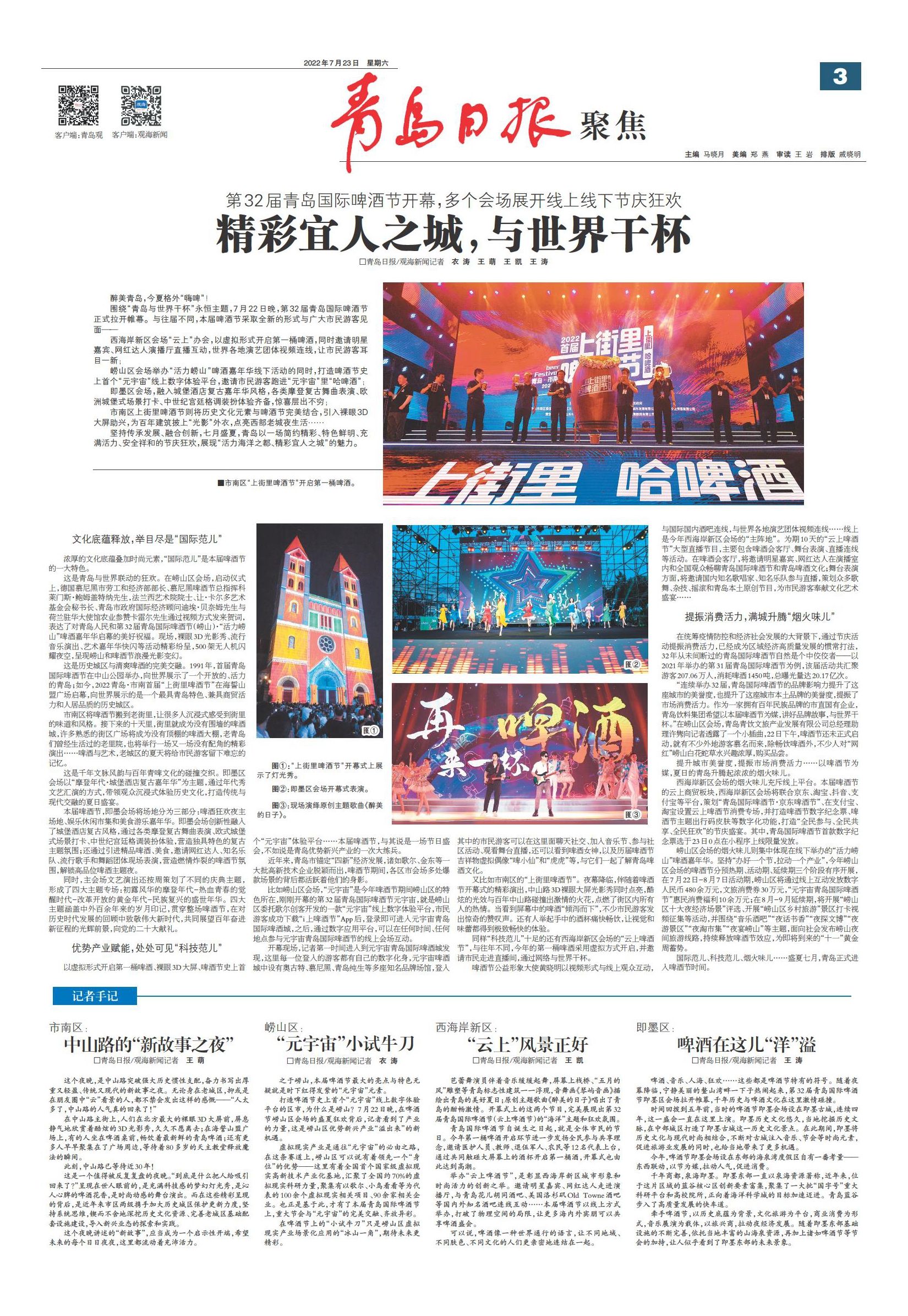打造啤酒节史上首个“元宇宙”线上数字体验平台的区市,为什么是崂山?7月22日晚,在啤酒节崂山区会场的盛夏狂欢背后,记者看到了产业的力量,这是崂山区优势新兴产业“溢出来”的新机遇。