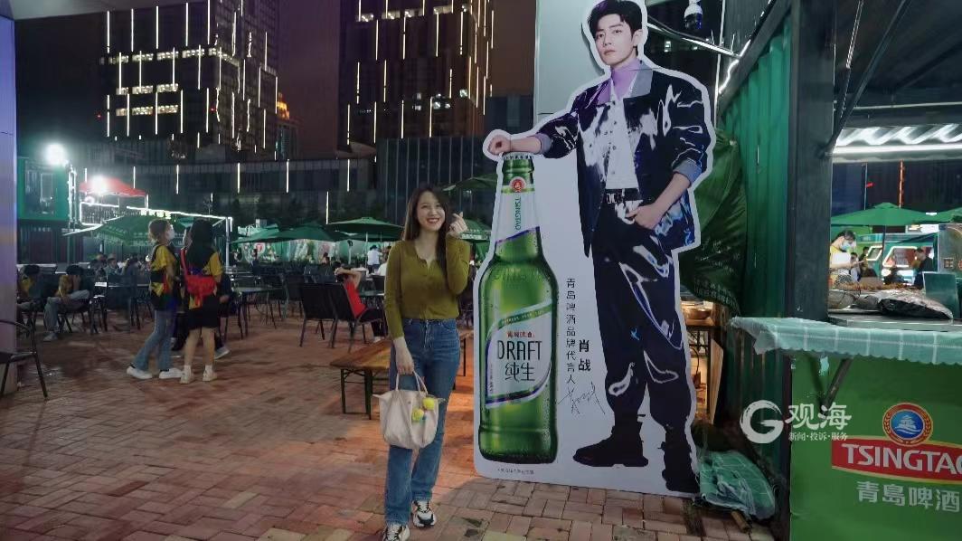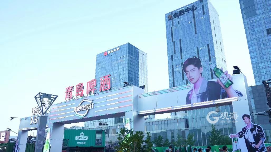 人们热爱啤酒带来的清凉,更热爱啤酒节不一样的鲜活体验。在“活力崂山”啤酒嘉年华崂山区世纪广场啤酒城内,青岛啤酒品牌代言人肖战的巨大人型立牌空降青岛纯生大篷,吸引了众多年轻人前来打卡。这背后有当红”顶流”的号召力,亦是青岛纯生年轻鲜活的吸引力。