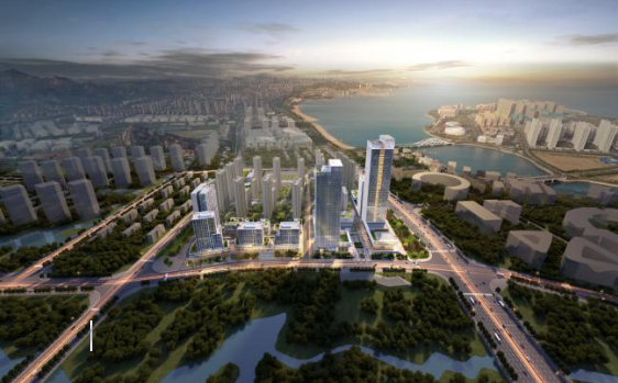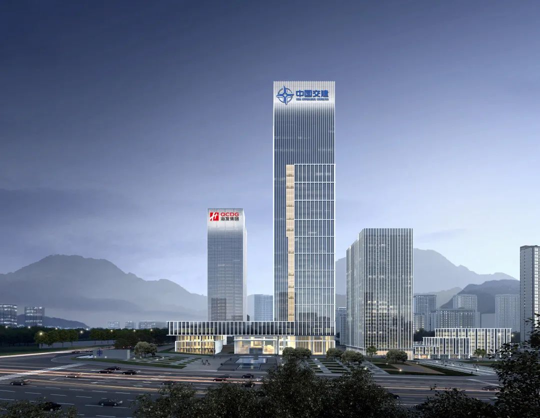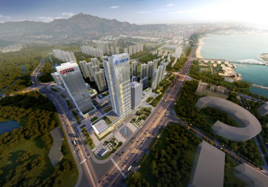 在中交青岛总部基地项目设计中,设计师梳理项目与周边自然环境的关系,将山、海、公园等景观资源整合利用,打造集办公、商业、教育居住为一体的新兴城市模式;同时以中交集团产业为依托,充分利用周边交通及景观优势,将沿滨海大道的街角打造成西海岸具有人文性、标志性的中交青岛总部办公地标群。