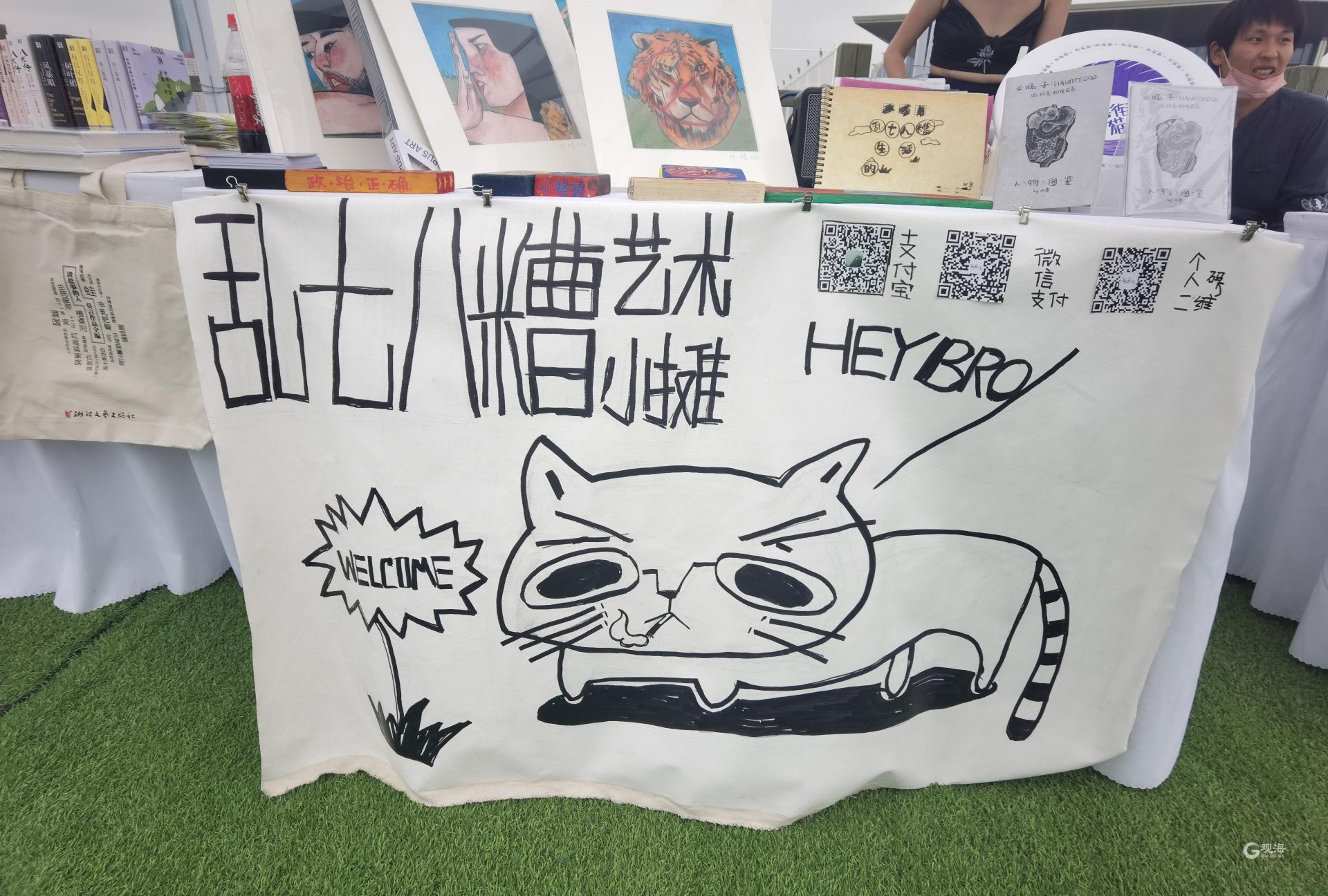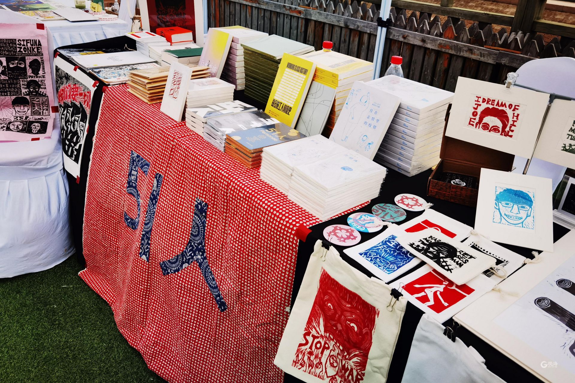今天傍晚时分尽管经历了短暂的阵雨,不是书展不设限的艺术聚合力还是吸引了更多的年轻人聚集在此,音乐、插画、摄影、手工创作给众人带来热闹与惊喜。主办方既邀请到了资深艺术家带来他们无可替代的沉淀积累之作,也吸纳了拥有着无限能量的独立青年创作者,其中年纪最轻的还在读高中。MDL工作室是一个由北京探月学院的高中生们组成的设计小组,以平面设计为核心,学习知识、解决问题、投身实践,致力于让设计与创作走进中学生活,影响更多同龄人。这次他们带来了以“六个北方人”主题的原创绘本,描摹了六座城市,展现浓浓乡愁。MDL工作室的创始人之一马晨庭表示:“不是书展给了我们艺术创作者一个展示自己的舞台,也给了我们与读者一个交流彼此的契机,它最吸引人的地方在于它的包容性,能够来青岛参加不是书展,让更多的人看到MDL的作品,和来自天南海北的爱书人一起在海上相遇,我们感到不虚此行。”