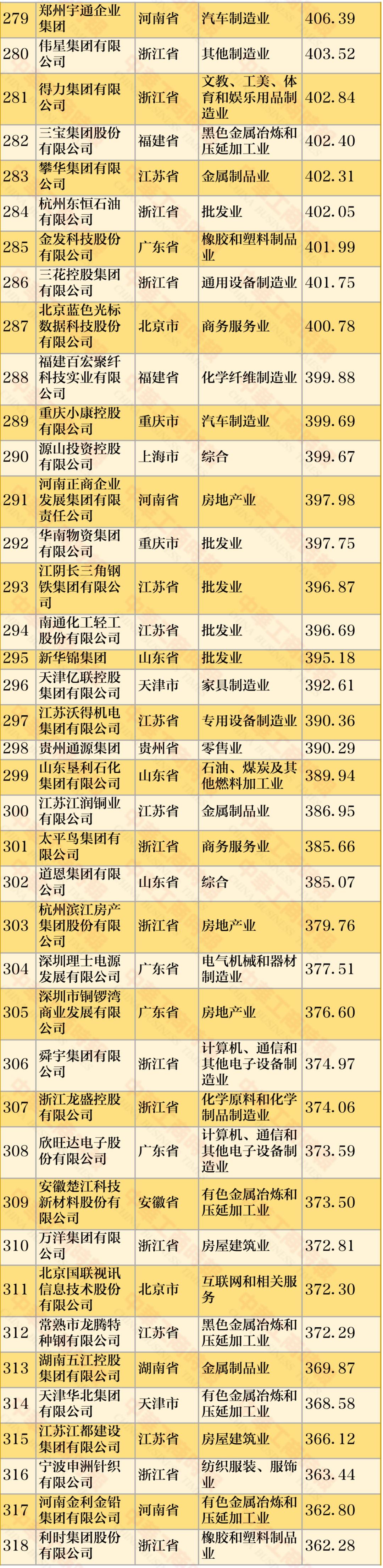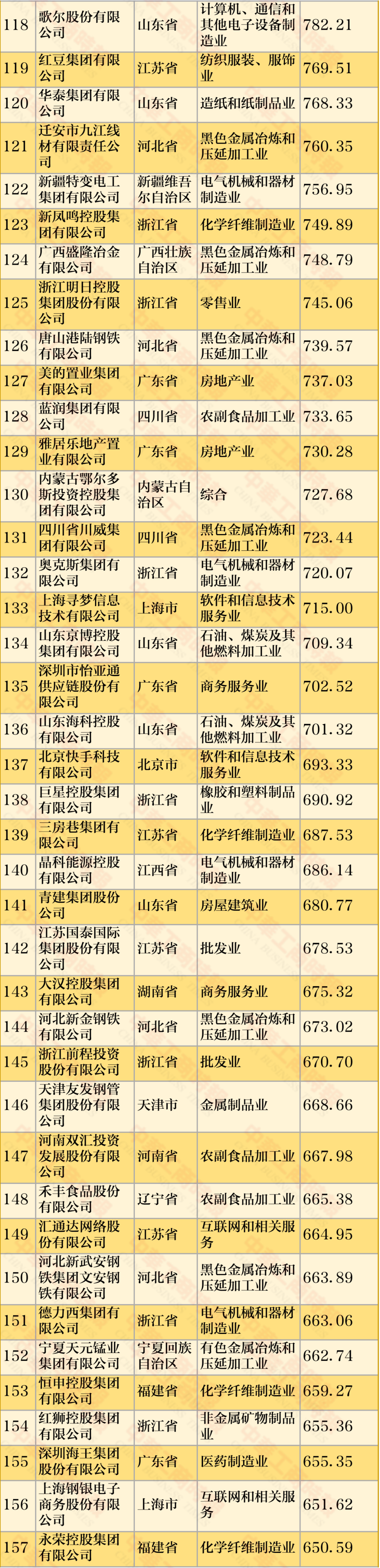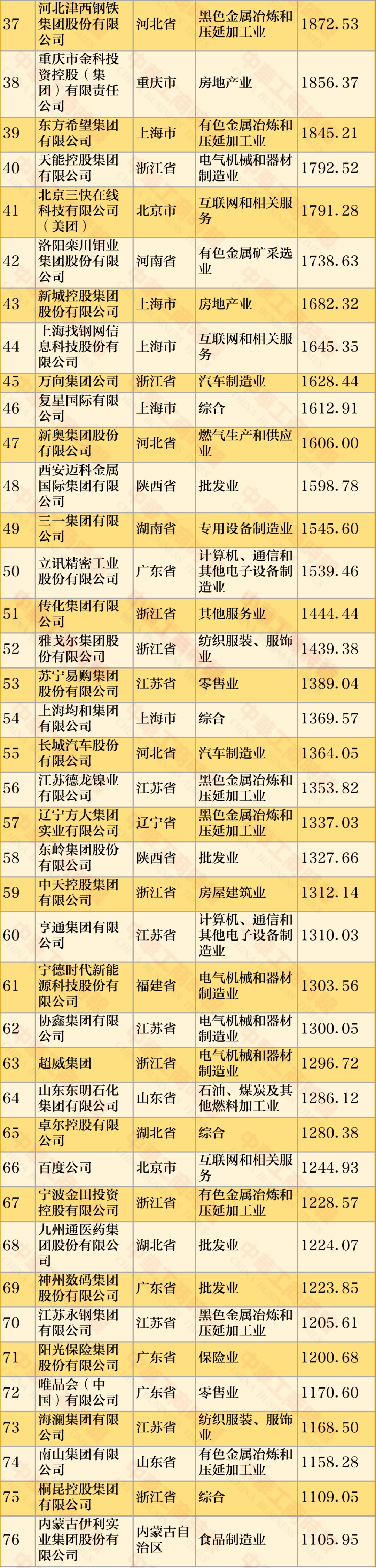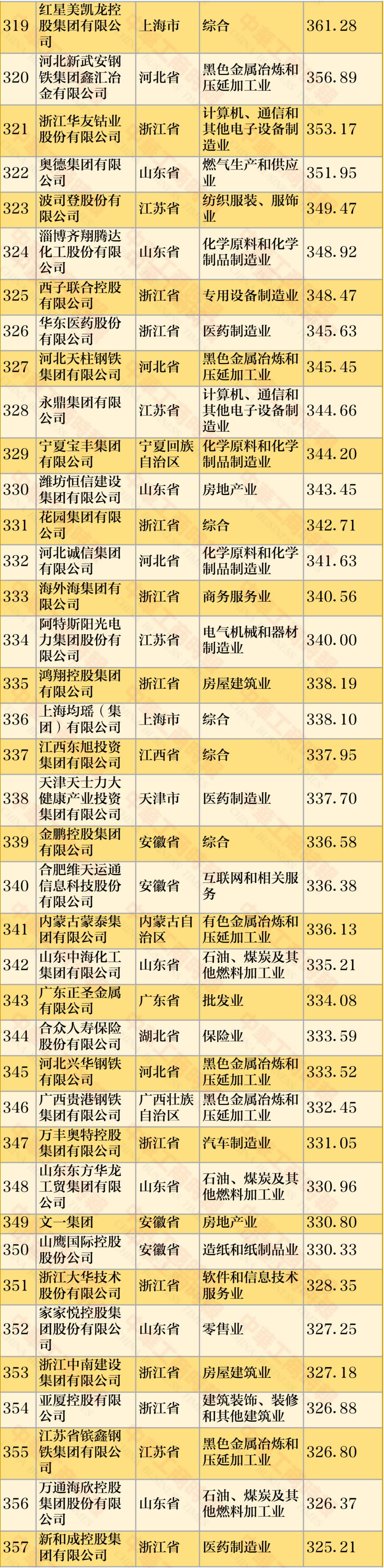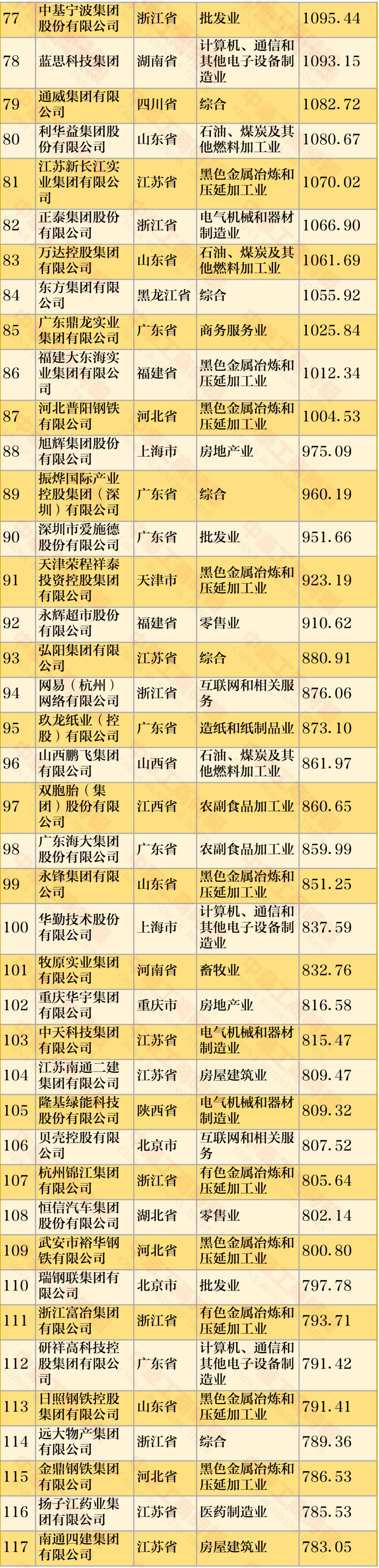 报告显示,民营企业500强入围门槛达263.67亿元,比上年增加28.66亿元;制造业民营企业500强入围门槛达125.72亿元,比上年增加25.21亿元;服务业民营企业100强入围门槛达301.16亿元,比上年减少21.61亿元。19家500强企业营业收入超3000亿元,京东集团(9515.92亿元)、阿里巴巴(中国)有限公司(8364.05亿元)、恒力集团有限公司(7323.45亿元)、正威国际集团有限公司(7227.54亿元)、华为投资控股有限公司(6368.07亿元)等5家企业营业收入超过6000亿元。(来源:人民日报客户端)