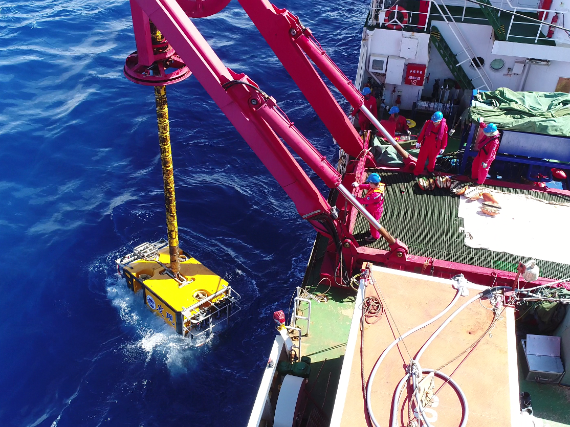 而“发现”号ROV的研发,也为我国后来的无人潜水器发展提供了技术借鉴。“以往的潜水器上面通常安装巨大的脐带电缆管理系统(TMS),科考船通过铠装光电复合缆连接这个系统,这个系统中储存的零浮力脐带电缆再连接潜水器。这主要是借鉴了用于海洋工程的无人潜水器的做法,但海洋科考与之不同,在实际应用中难以保持潜水器与TMS相对稳定。”张鑫说,“发现”号ROV最大的不同就是不再保留这套TMS系统,而是直接在靠近潜水器端的最后50米铠装电缆上加装浮球,使其在海底保持正浮力,这样在科考作业时电缆在水中形成了一个接近百米的“S”形,潜水器可以自由移动,且不易与铠装电缆产生纠缠。自“发现”号ROV如此设计之后,我国后来研发的科考型ROV也都沿用了这种方法。