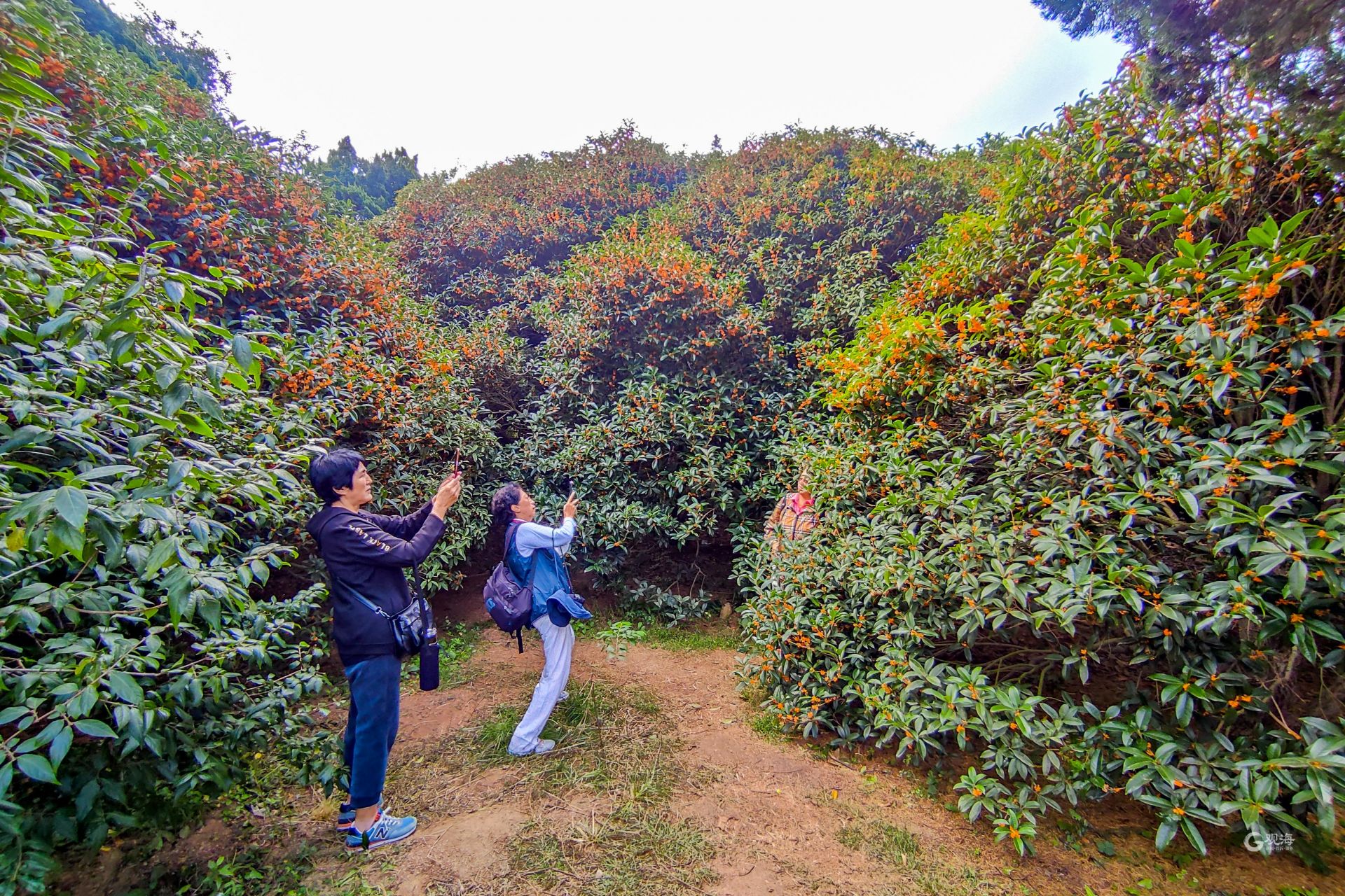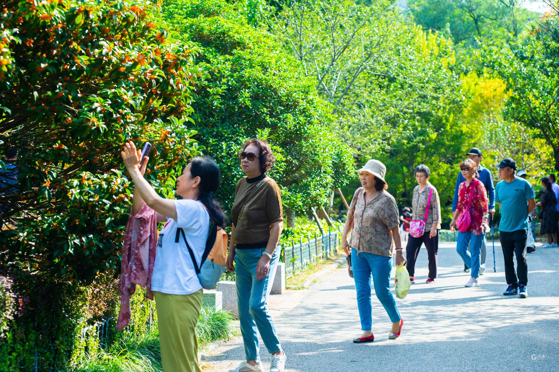 - 市民在桂花树下拍照留念。
