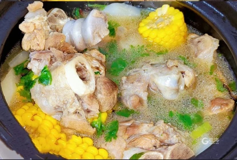 虽然有了技术加持,但想要做出好吃的棒骨砂锅,还得有父亲的点拨。“以前人们按照口感,将猪肉划分成了几个等级,最好吃的便是拆骨肉,之后才是猪头肉和五花肉。在各个部位被一抢而空后,只有大棒骨‘落单’,得到棒骨的人似乎也只剩下熬汤和炖煮两种烹饪选择。”叶青的父亲年轻时曾做过帮厨工作,一次他把店里剩下的棒骨带回家炖煮后意外发现,骨棒上仅存的肉格外香,以后大棒骨就纳入了家中食谱。白菜玉米是每个北方人秋冬必备的食材。做砂锅时,硬邦邦的白菜帮不必刀切,随意撕成片状扔进汤里,再加上玉米,也可以加卤水豆腐和红薯粉条,就算完整了。