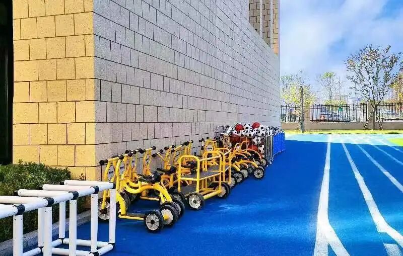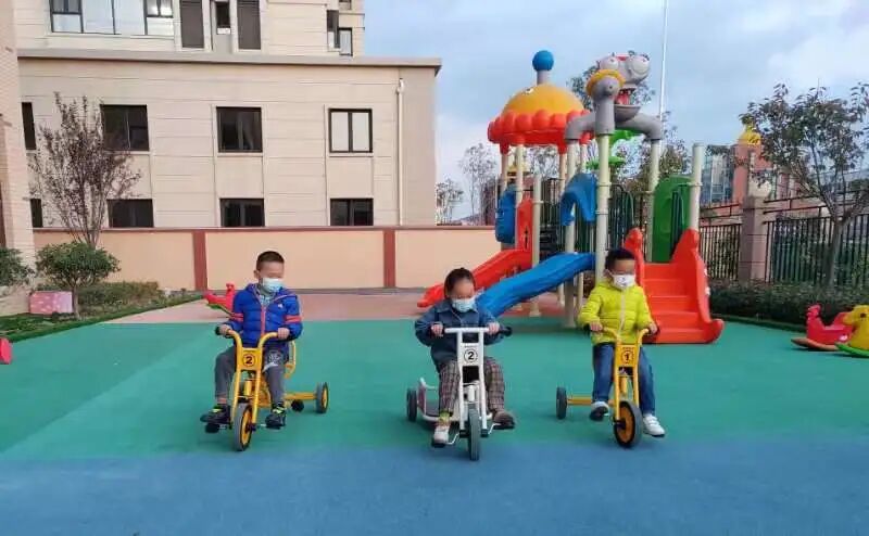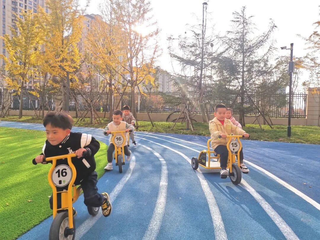 孩子们在院子里,既可以玩滑梯、攀爬、安吉箱之类的大型玩具;也可以进行风驰电掣骑行大赛。既有大肌肉的练习,又有小肌肉的锻炼。